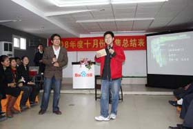 涼風(fēng)習(xí)習(xí),秋雨綿綿澆不滅我們涌動的青春、火熱的激情。2008年11月8號下午,我司十月份銷售總結(jié)表彰大會順利拉開了帷幕。百度渠道部經(jīng)理晟皞先生為此次會議作了一番別具風(fēng)格的致詞,與會人員無不熱情高漲。與其說是會議不如說是狂歡派對,大家不由自主地敞開心扉、釋放激情。