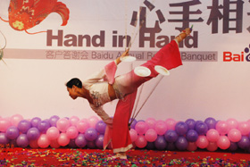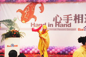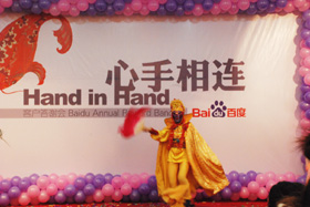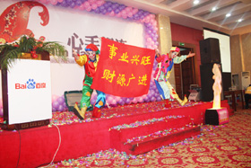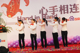 陽光絢爛,暖暖的冬風(fēng)輕拍著臉蛋,心情格外的爽快。2008年12月20日,“心手相連”百度客戶答謝會(huì)在鹽城山青水秀綠色生態(tài)美食園隆重舉行,200多人的會(huì)場坐無虛席!此次會(huì)議可謂“眾星云集”,泰州名主持小柏?fù)?dān)任此次會(huì)議的主持,我們也有幸邀請到百度客服經(jīng)理張鵬擔(dān)任此次會(huì)議的主講。午宴開始前百度渠道部經(jīng)理晟皞的祝酒詞,百度市場部經(jīng)理李方巖的“友情客串”,為此會(huì)議的舉辦增色不少。