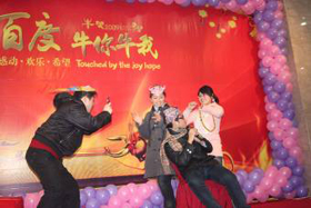 銀鼠辭歲,金牛迎春,1月23日,“舞百度?牛你牛我”09新春年會在美麗的山青水秀閃亮登場。