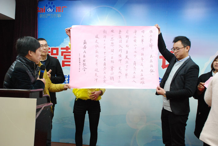 胡總給全體同仁做動(dòng)員令,期間,個(gè)人及部門挑戰(zhàn)PK不斷涌現(xiàn),會(huì)場硝煙彌漫火藥味十足,PK永遠(yuǎn)是勇敢者的游戲。